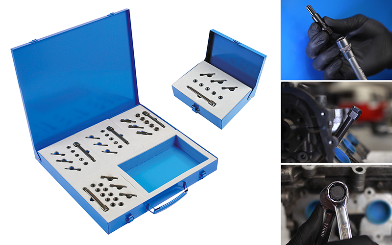 The kits include a specially designed insert fitting tool (Euro Registered, and manufactured in Sheffield by Laser Tools) that is much narrower than others available and offers much improved access to recessed glow plugs. The centre bolt of the tool is manufactured from high tensile steel for a long service life.
