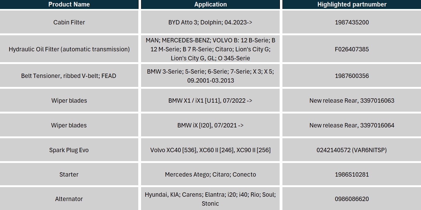 Bosch has released new products in both its Bosch and HC Cargo product ranges plus new diesel spare parts.