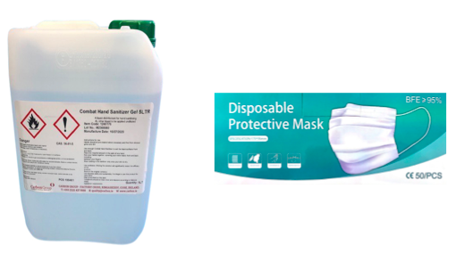 Finally, Soltec says when you buy four of its 5 litre of hand sanitiser gel (€30), you will receive a free box of 50 3-ply Face masks with next day delivery.